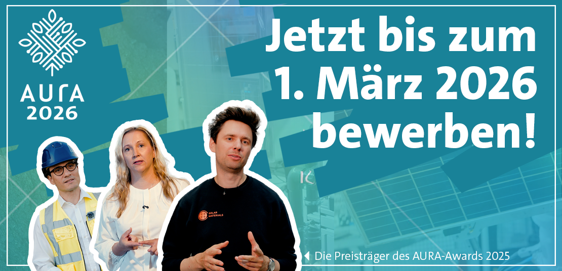 Die neue Wettbewerbsrunde ist gestartet: Gesucht werden wieder kleine und mittelständische Unternehmen, die ihre Produktion energieeffizient aufgestellt haben, auf erneuerbare Energien setzen oder kostbare Rohstoffe recyceln. Bewerben Sie sich bis zum 1. März 2026 um den AURA-Award für nachhaltiges Unternehmertum und setzen Sie ein Zeichen für eine nachhaltige Zukunft in Sachsen-Anhalt!